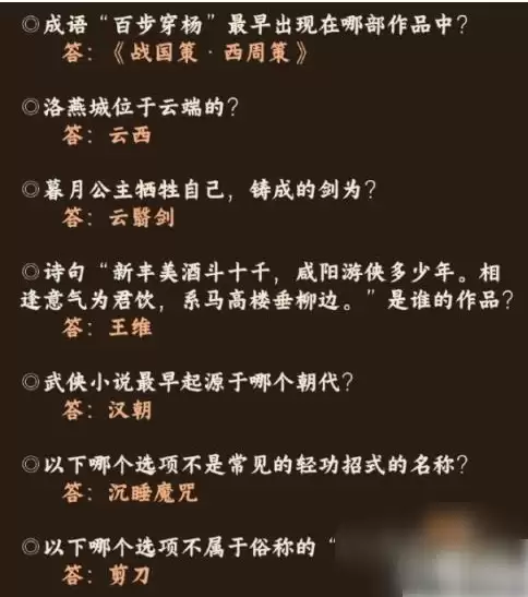 以上就是关于奇迹暖暖红尘侠隐答案介绍的全部内容,活动中的问题包含的范围非常广,非常考验玩家的智力,如果遇到不懂的可以参考小编分享给大家的答案。