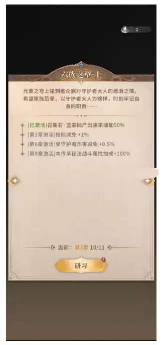 3、最后,针对所有图书馆的图书,最后一章都是本章传承秘法属性增加,由于凯斯火种的稀有,一般不建议解锁。而因为血脉结晶其实也有点稀缺,图书馆的图书一般来说只解锁自己需要的效果即可停止,没必要再用血脉结晶继续研习。