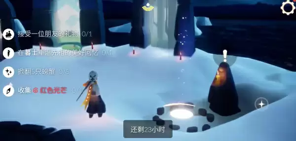 光遇1月18日的每日任务的位置都在什么地方呢?今日的任务是要接受一位朋友的礼物,然后在暮土重温先祖的美好回忆,然后到暮土里面掀翻5个螃蟹,最后收集到红色的光芒就可以了。