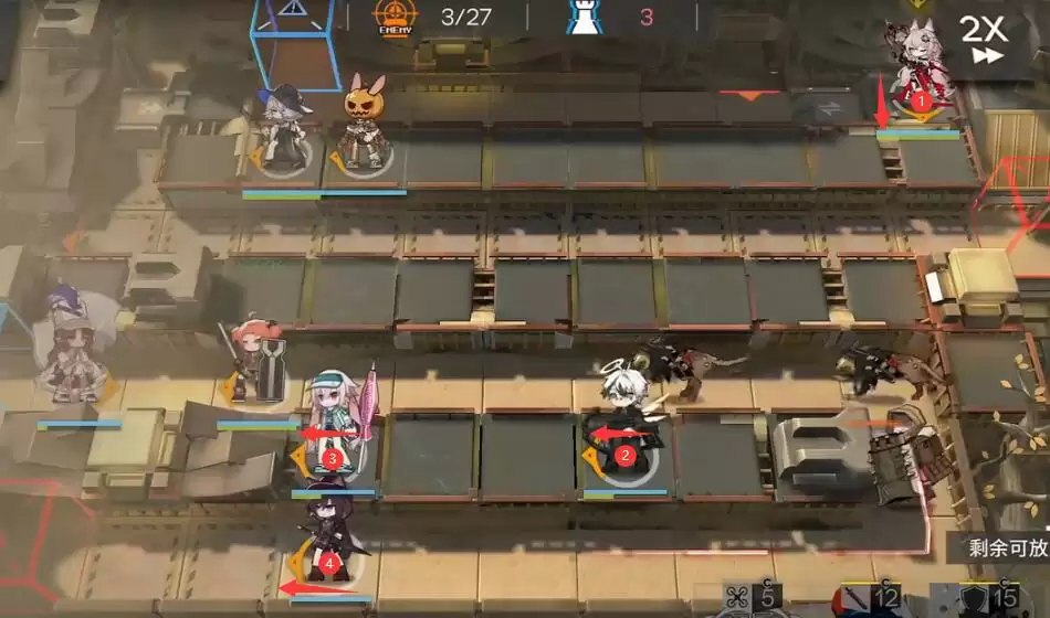 BOSS解决后就如图所示把近卫和打字机放过来清理小怪就行。