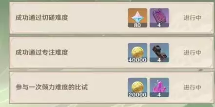 注:挑战完成专注难度后才可以解锁倾力难度,完成高难度挑战可以直接获得低难度的奖励。