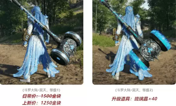 1、昊天锤的价格为1500,活动价格为1250金块。