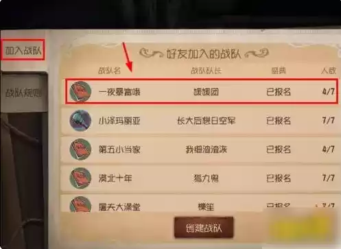 又返回加入战队页面,选择要加入的战队,如图所示