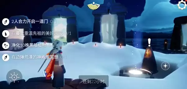 光遇1月23日的每日任务的位置都在什么地方呢?今日的任务可以在禁阁以及暮土里面就可以完成的,分别是两人合力开一道门,然后在暮土重温先祖的美好回忆,净化10株黑暗植物,最后来到边陲荒漠神殿里面冥想就可以完成了。