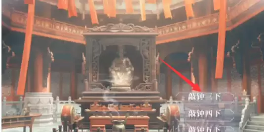 1、点击蓝光圈,与夏萧因对话,选择【敲钟三下】即可。
