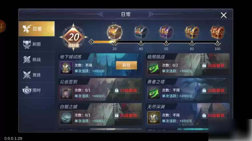 7、玩家可以通过日常挑战、勇者之塔等副本快速升级