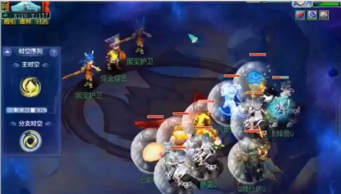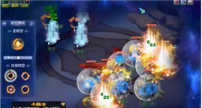 (2)分支时空只有三个小怪,很容易就可以清理完,当分支时空打完,再切换到主时空,会发现我方队长的旁边多了一个凤凰,凤凰会对敌方使用技能“熔金之火”,使用后,怪物属性大幅下降,这时你会发现战斗变的很简单。