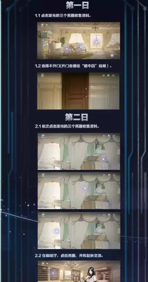 2.一定要先点击光圈收集资料,再离开走廊。