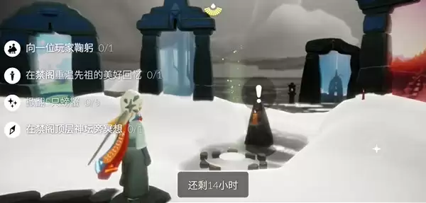 光遇1月29日的每日任务的位置都在什么地方呢?今日的任务是需要向一位玩家鞠躬,然后在禁阁重温先祖的美好回忆,然后去掀翻5个螃蟹,最后来到这个禁阁顶层神坛旁边冥想就可以了。