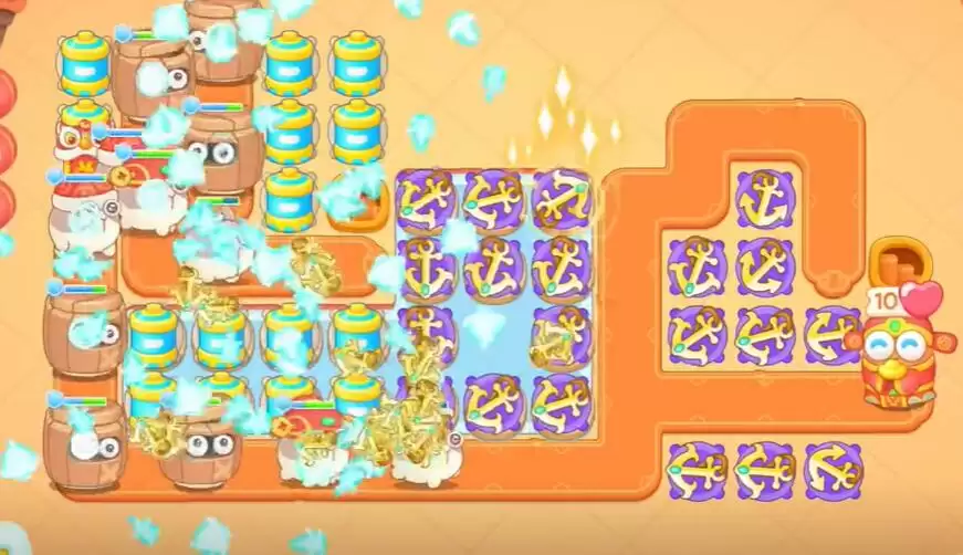 4、在右侧摧毁的障碍物的地方建造船锚,对上方的障碍物进行攻击。