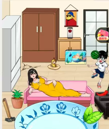 4、先拖动厕所里面的画到女主,再拖动柠檬到碗里
