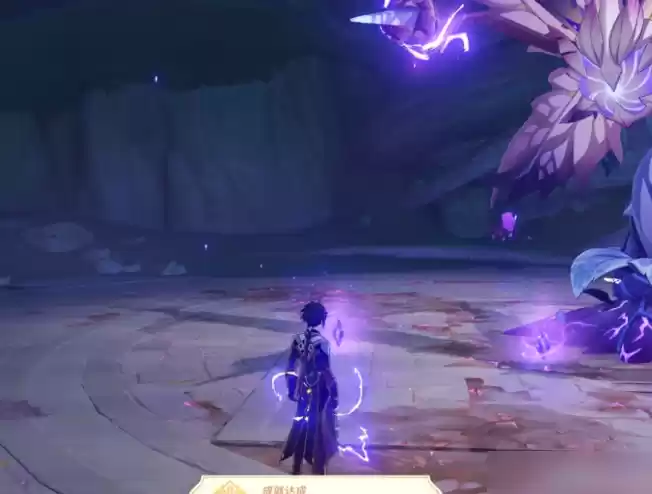 去雷树的位置,过去后啥也不用干,等它放出两朵小花,两朵小花会共鸣爆炸,爆炸后弹出成就。