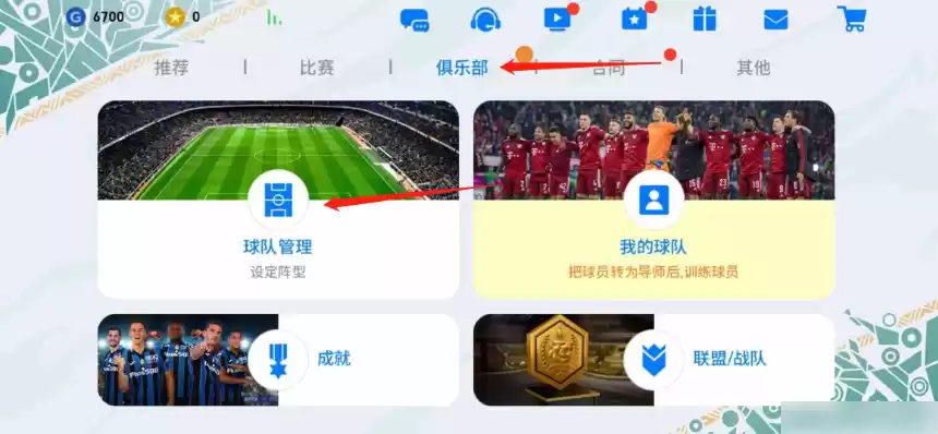 首先进入游戏后,点击上方的俱乐部,再点击球队管理进入