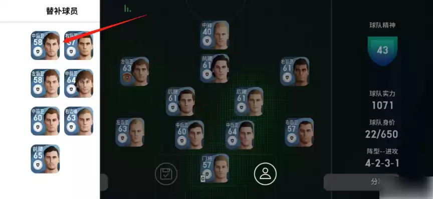 进入球队管理后点击左侧的衣服,此时会弹出替补球员的名单