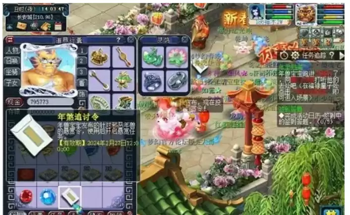 1.梦幻西游年煞追讨令每天14:00-14:15期间,年兽宝宝将于长安城(208,99)召集征讨邪恶年兽的少侠,期间每分钟发布10张“年煞追讨令”,请少侠仔细留意长安城(208,99)周边地面。领取年煞追讨令需支付50000金钱作为押金,完成追讨令任务后将悉数退回押金。