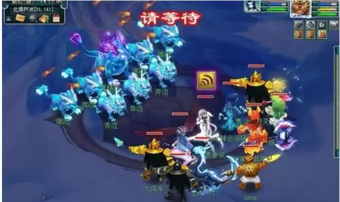 主怪每回合会使其中一个奔流变成湍流。后排湍流凌波城门派,前排奔流使用水系法术。