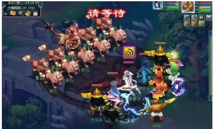 后排重岩使用土系法术;前排碎石气血较少,但是主怪会不停召唤碎石。建议优先击杀主怪,可以适时罗汉抵抗泰山的持续输出。