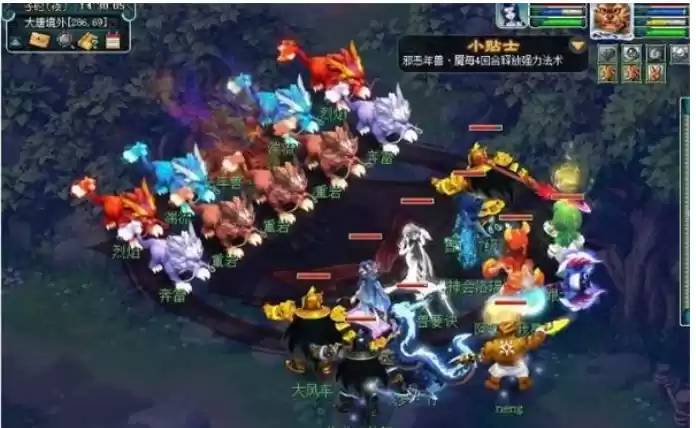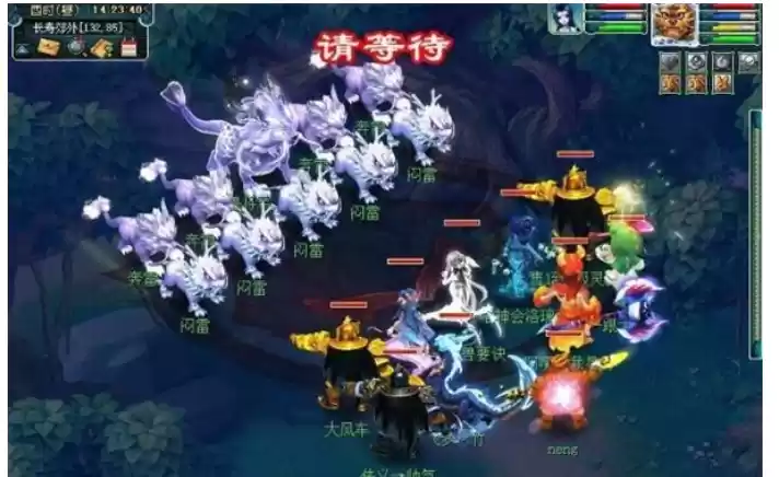 前排闷雷使用雷系小法(雷击),后排奔雷使用雷系大法(奔雷咒)。主怪每回合消耗自身气血来召唤小怪。可以通过不断击杀小怪消耗主怪气血。