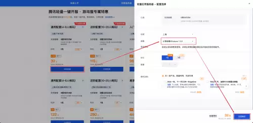 1、通过游戏服务器专属优惠页或腾讯云轻量应用服务器Lighthouse购买页,选择“幻兽帕鲁Windows”,并点击立即购买。