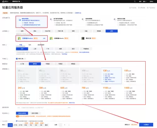 腾讯云轻量应用服务器Lighthouse购买页