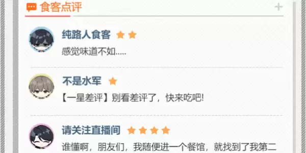 3、在舰长经营餐厅过程中,还将收到来自食客的评价,当收获好评时请继续努力保持水平,当获得差评时也请不要丧失信心~