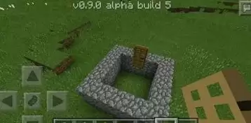 3.向上垒石头和木头,把四周都围起来,墙垒高。