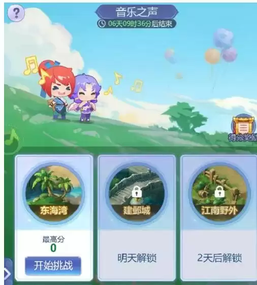1、【音乐之声】活动共有六首歌曲,每天会开放一首曲,挑战达到对应分数后即可领取奖励