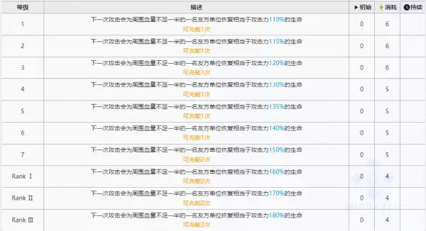 下一次攻击会为周围血量不足一半的一名友方单位恢复一定生命