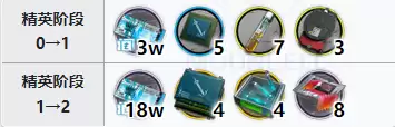 精英阶段1:龙门币*30000、近卫芯片*5、酮凝集*7、装置*3