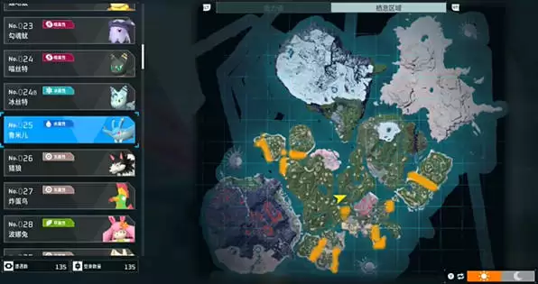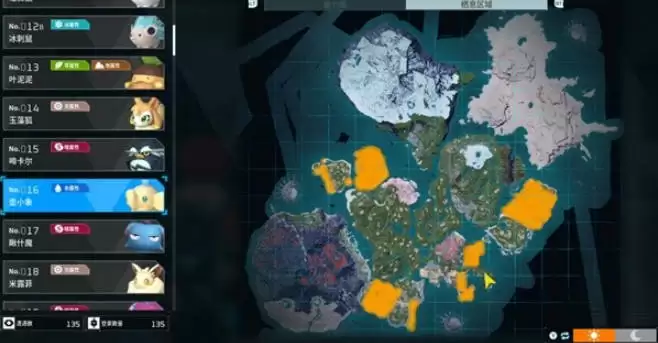 2、帕鲁分布在地图的各个位置,在上方和下方都有大片的位置。