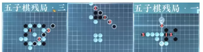 1.逆水寒手游五子棋残局一、五子棋残局二、五子棋残局三走法如下: