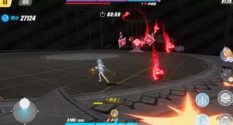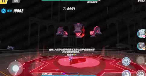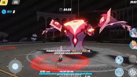2、在转阶段中,关卡计时会暂停。同时分裂6个蠕行级崩坏兽,毕舍遮的魂魄会在蠕行级崩坏兽之间逃窜3次,最后会停在某只蠕行级崩坏兽上进行攻击,并出现承受三下的护盾,持*3*,如GIF所示,该过程会重复三次,成功击破两次护盾即可获得15点SP。