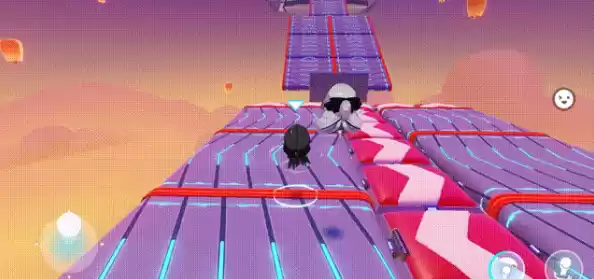 4、玩家也可以在最后一个弹簧垫的地方使用降落伞,直接借助降落伞技能冲向终点,这样就比别人更快一步了,简直是事半功倍,很快就能完成这个赛道了。