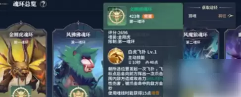 金刚虎魂环不仅提供魂意积累和伤害加成,还能延长眩晕技能的持续时间。装备金刚虎魂环后,玩家能够观察到主动技能的变化形态。此外,金刚虎魂环的年份可以升级,年份越长,效果越强。