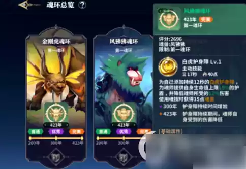 风狒狒魂环与金刚虎魂环并不冲突,而是可以作为主魂环和副魂环相互协调使用。玩家可以根据需求选择如何升级风狒狒魂环,从而获得不同的效果。若想延长护盾持续时间,可将魂环升级至300年;若追求免伤效果,升级至423年。
