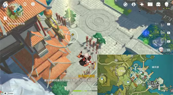 2. 剧情完成后,传送至天衡山东南锚点,前往月海亭与甘雨交流。