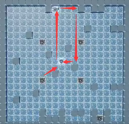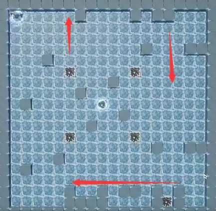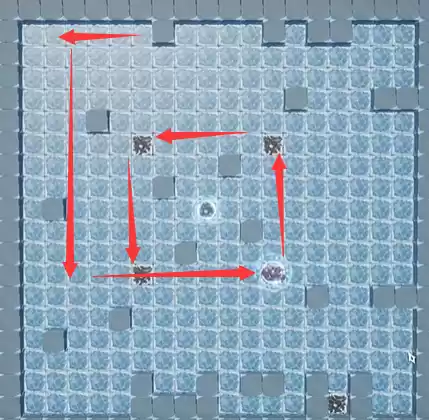 1、右下角石头直走撞墙,之后移动到最右上方;