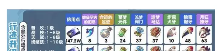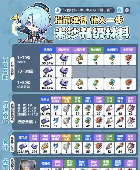 3.崩坏星穹铁道米沙行迹升级材料如下: