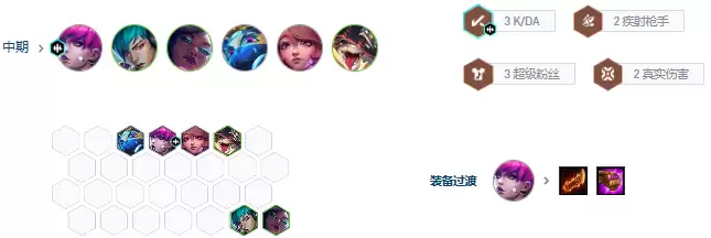 2、羁绊:1双修出道、6真实伤害、2疾射枪手、3超级粉丝、2秘术护卫、2护卫。