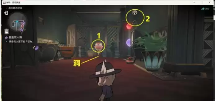 16.然后来到电视这里变成角色,接着去1位置拿第1个证物。