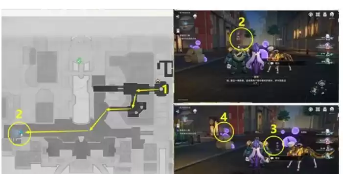 13.然后追踪任务,从1位置一直到2位置,在2位置对话完后,再去旁边3和4位置调查一下。