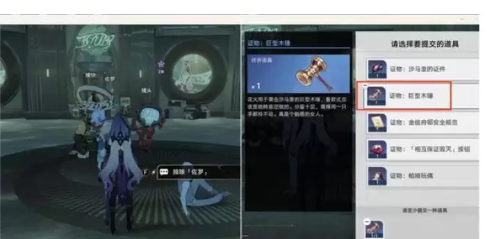 12.接着选择排除佐罗后提交第2个证物巨型木锤。