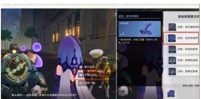 24.完成上面后,会退出来到下图位置,然后选择不指认凶手后,选择提交第2个证物佐罗的领带即可。