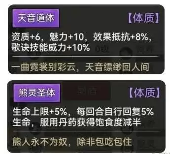 3、在体质这一方面,如果有就最好,但是紫色的属性较为罕见,最好可以和弟子所修炼的功法相对应,带来更好的效果。