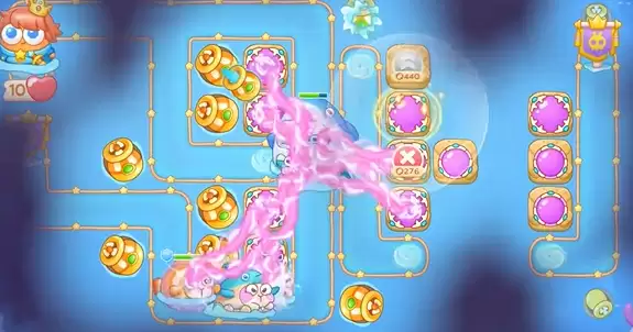 1、前期可以使用这个水雷来清理道具,不断的清理出空位就可以放上魔法球。