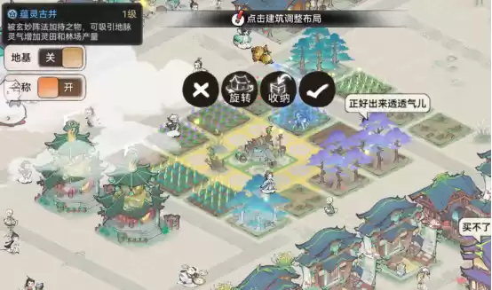 2.后期会获得免费送的建筑蕴灵古井也可以增加灵田林场产量,具体的摆放按下图便可以达到*大收益。