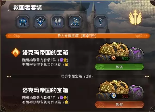 1、每个势力都有自己的专属套装,凑齐套装会有强大的独特加成,势力装备不能通过掉落获取,*的获取途径就是用势力对应的势力币去主城的军械库中购买。