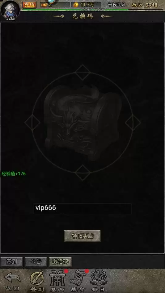 3、然后输入你获取的兑换码,点击领取奖励,小编也为大家整理了一组可以使用的激活码:
