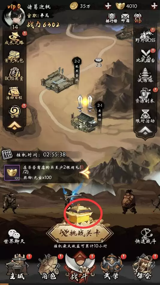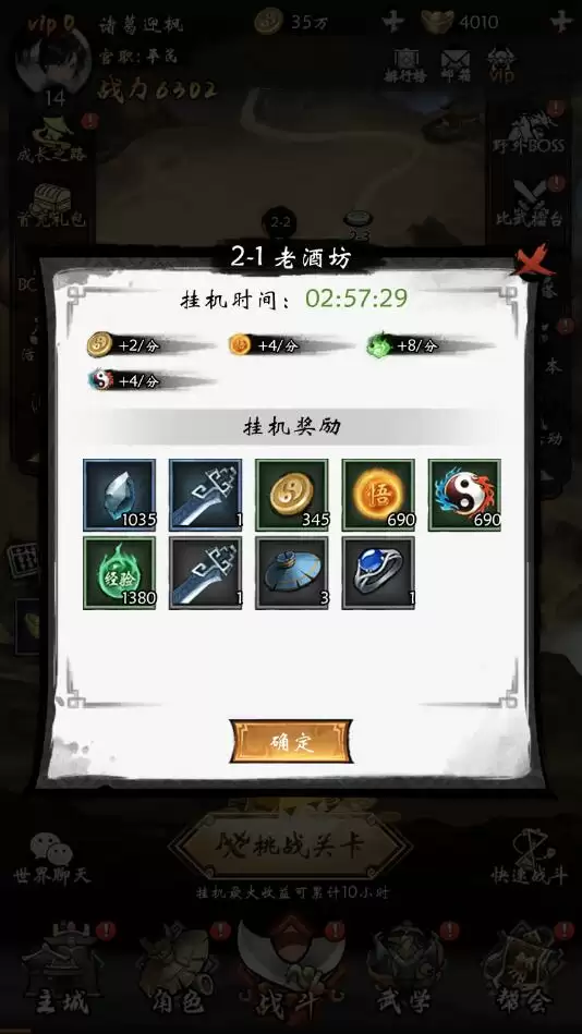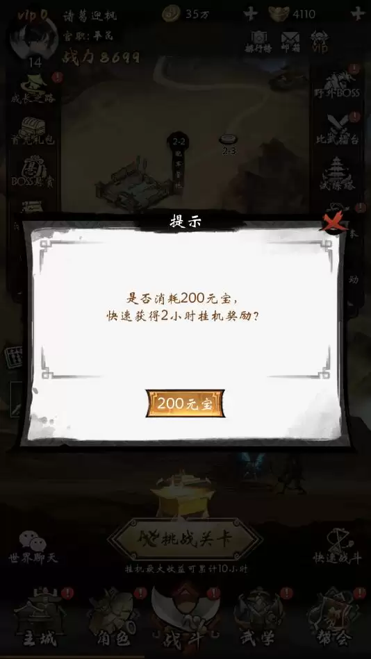 6、如下图,每消耗200元宝可以快速获得2小时的挂机奖励