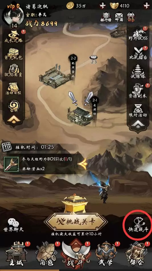 5、最后,玩家还可以点击右下角的“快速战斗”进行升级